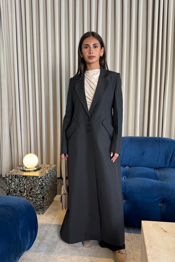 A two-tone abaya made of silk linen, con...