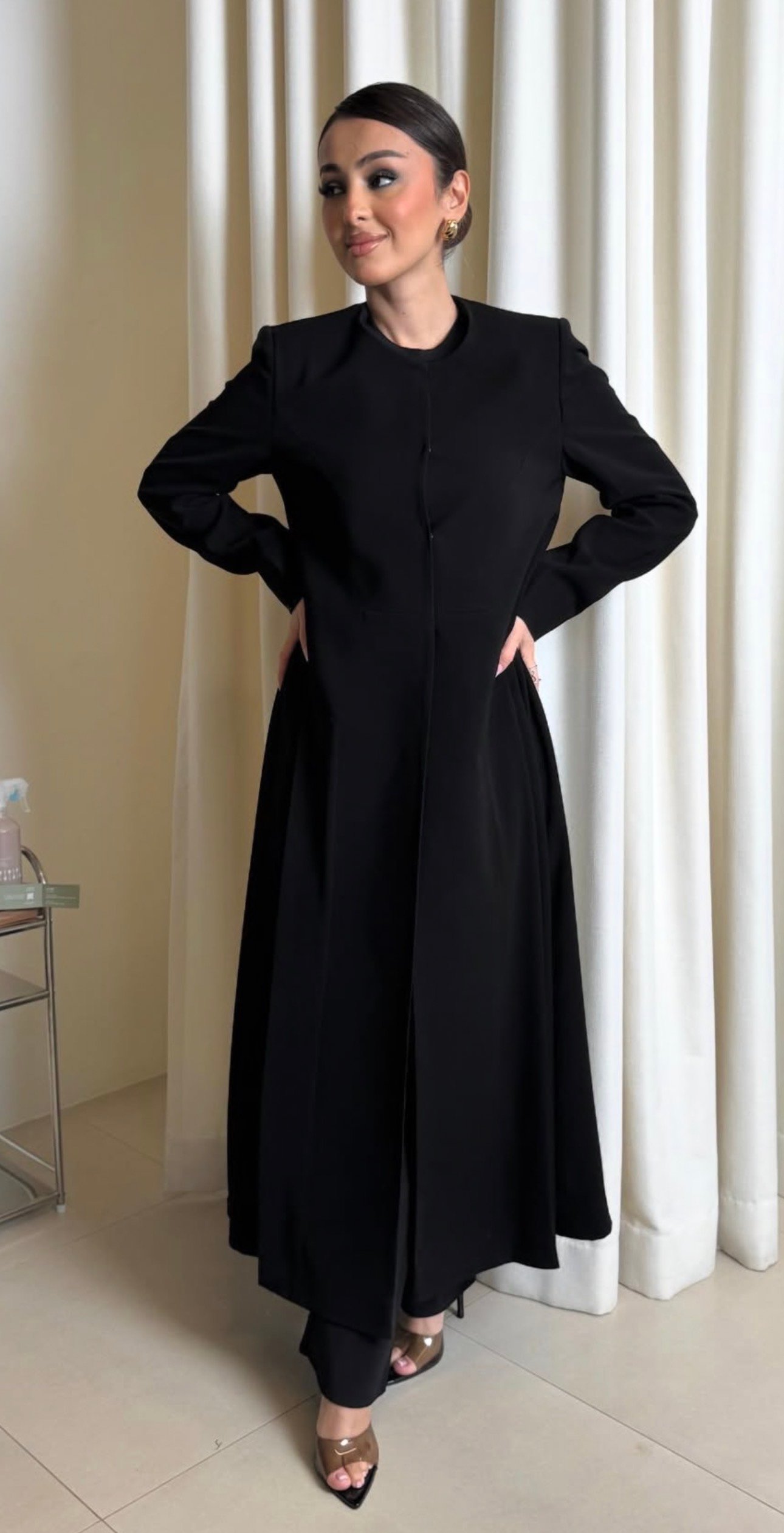 A two-tone abaya made of silk linen, con...