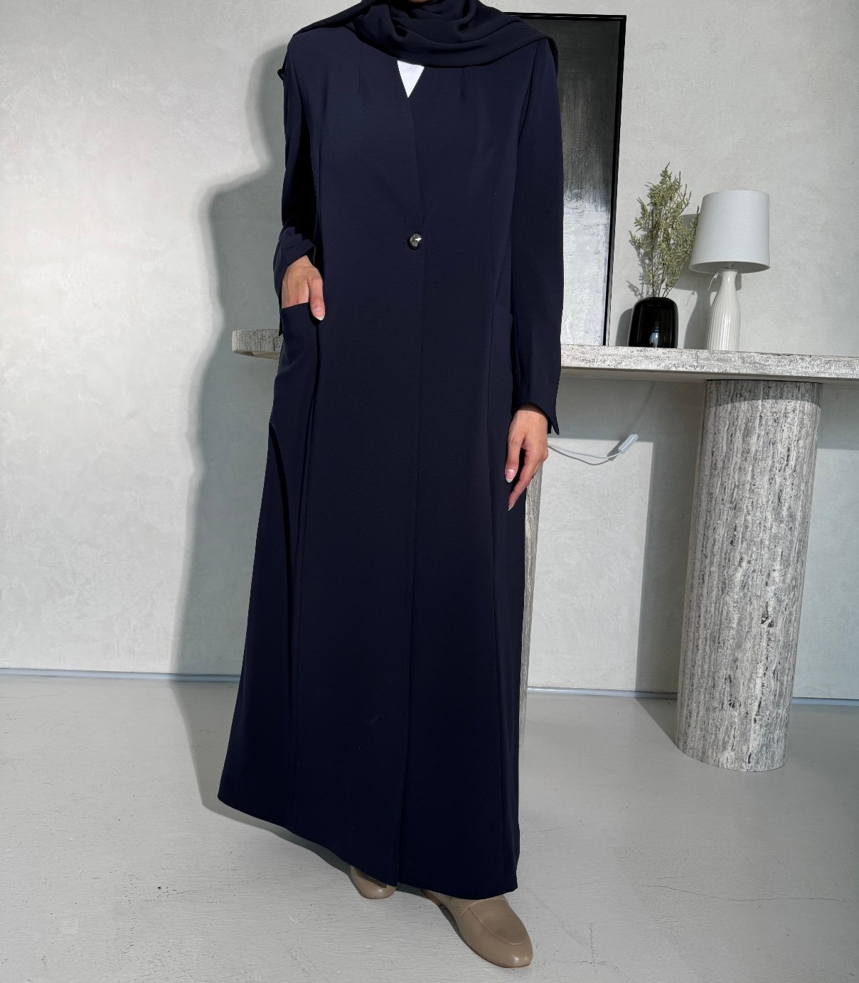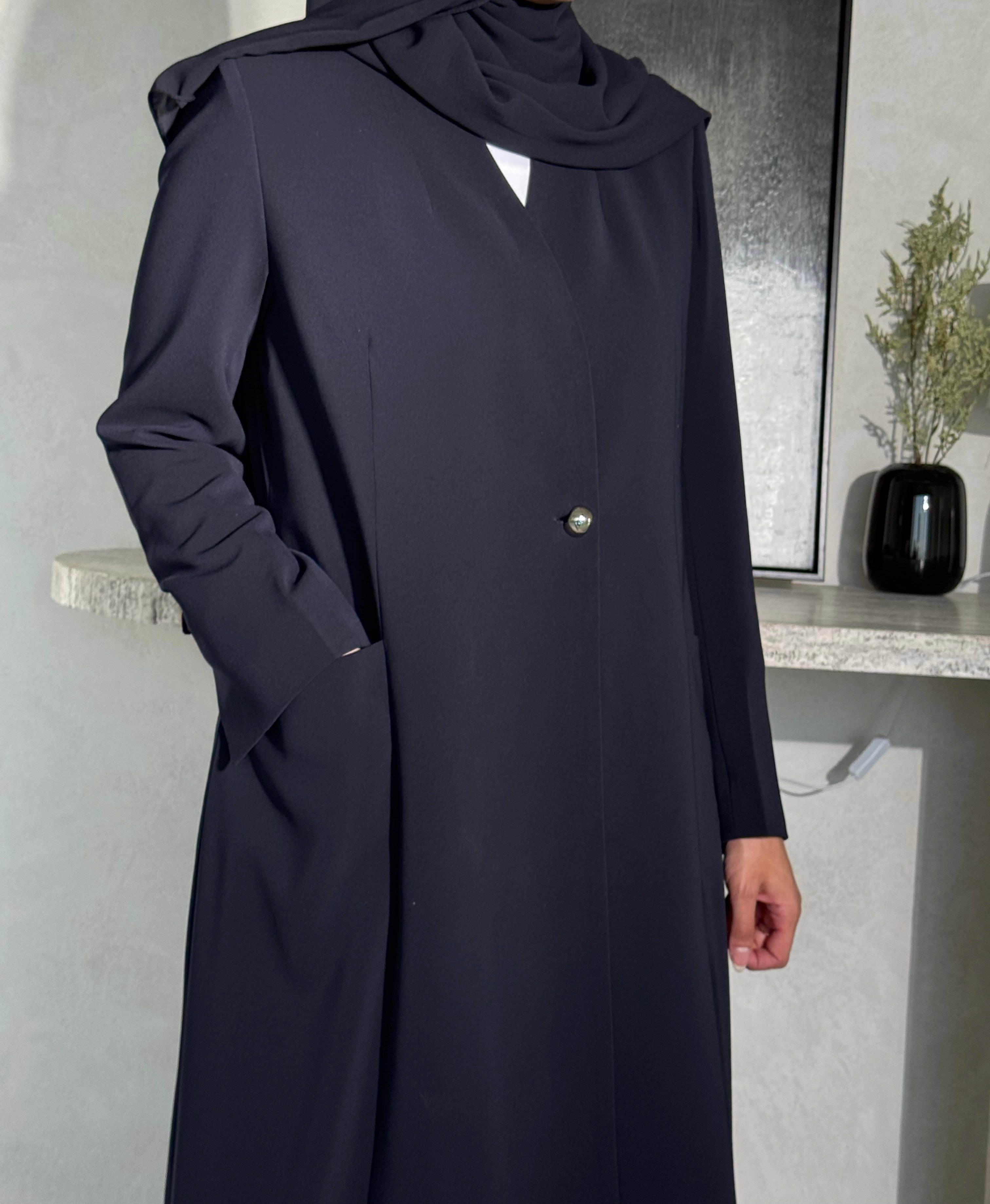 عبايه لف بزرار سلفر نوع الخام كريب ياباني